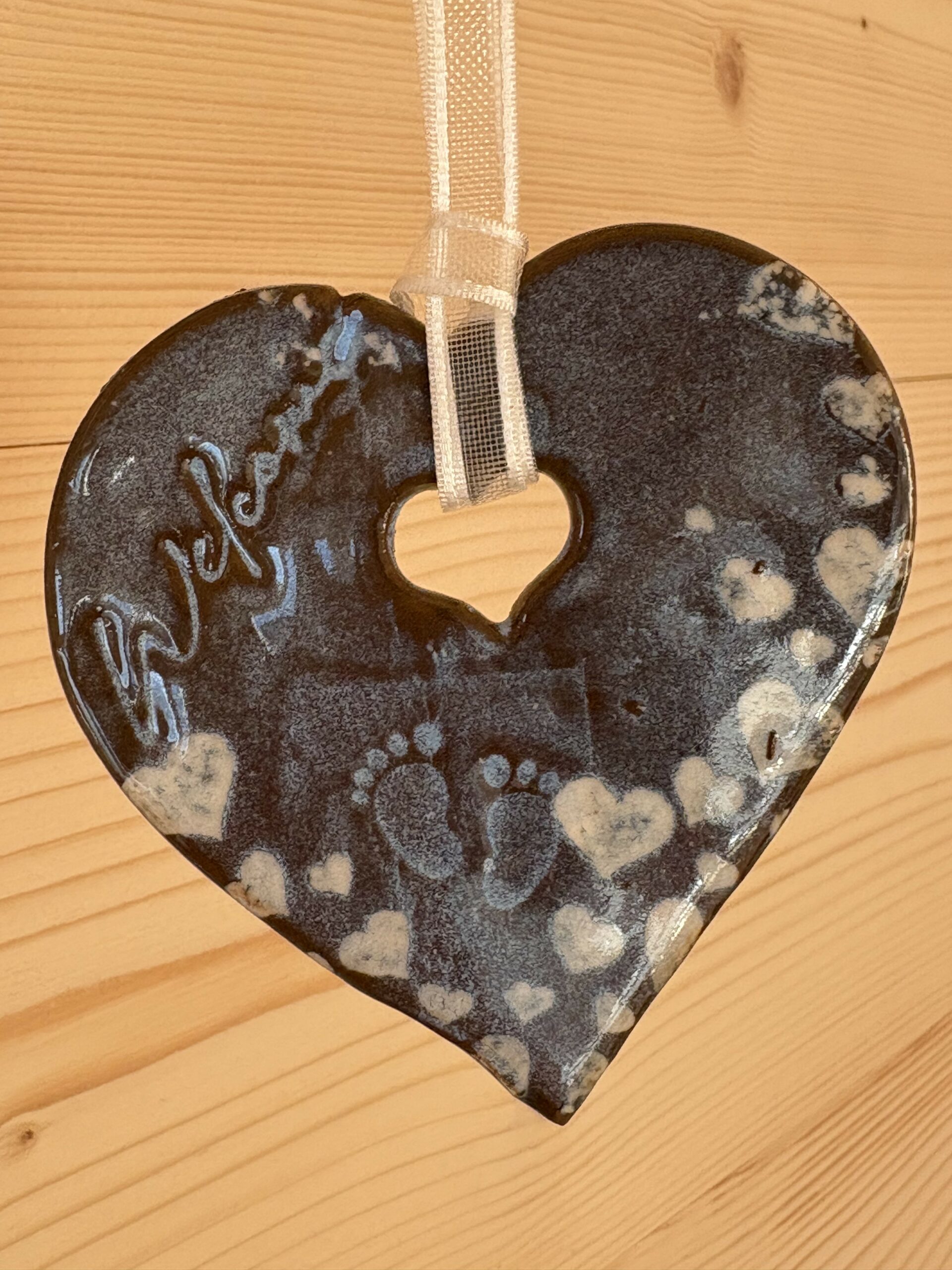 Cœur en porcelaine noire avec incrustation de porcelaine blanche à suspendre ou à poser