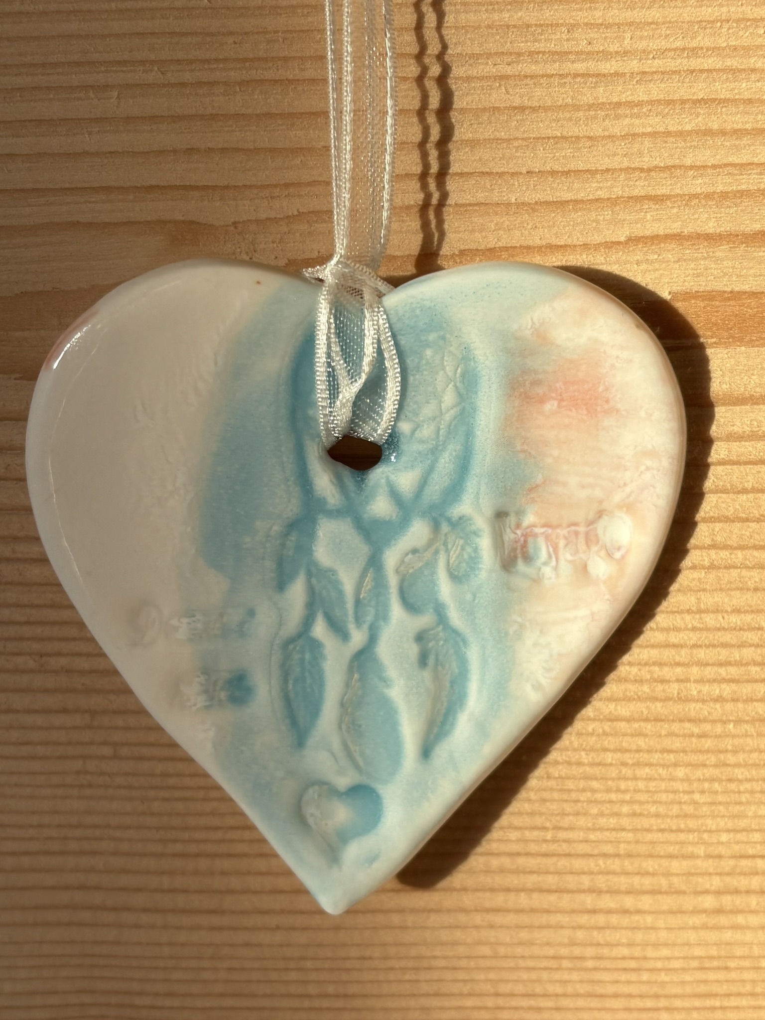 Cœur en porcelaine extra-blanche émaillée avec un message « Voyage Rêves » à suspendre ou à poser