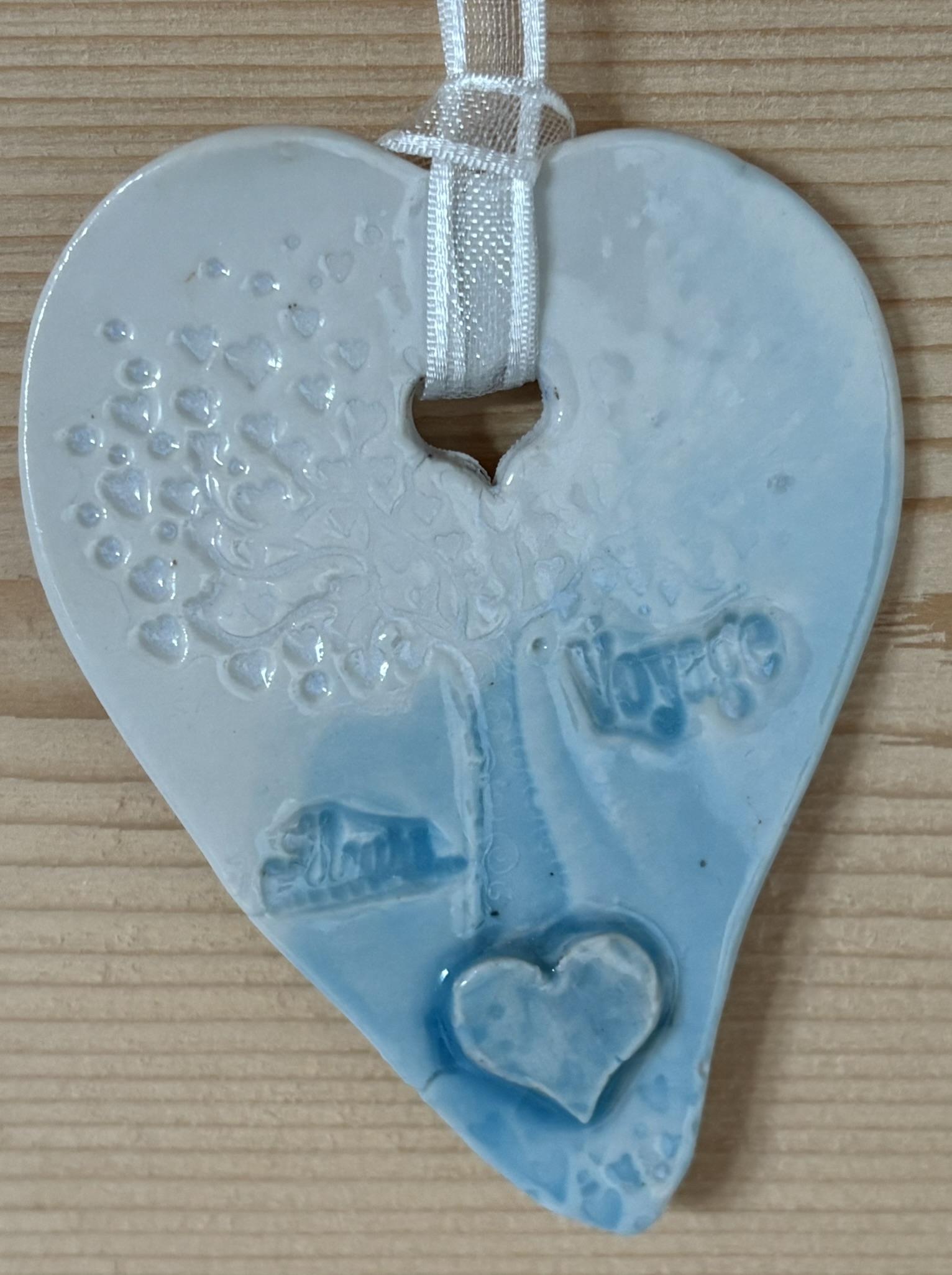 Cœur en porcelaine blanche émaillée : invitation au voyage dans une magnifique douceur de ce bleu Larimar à suspendre ou à poser