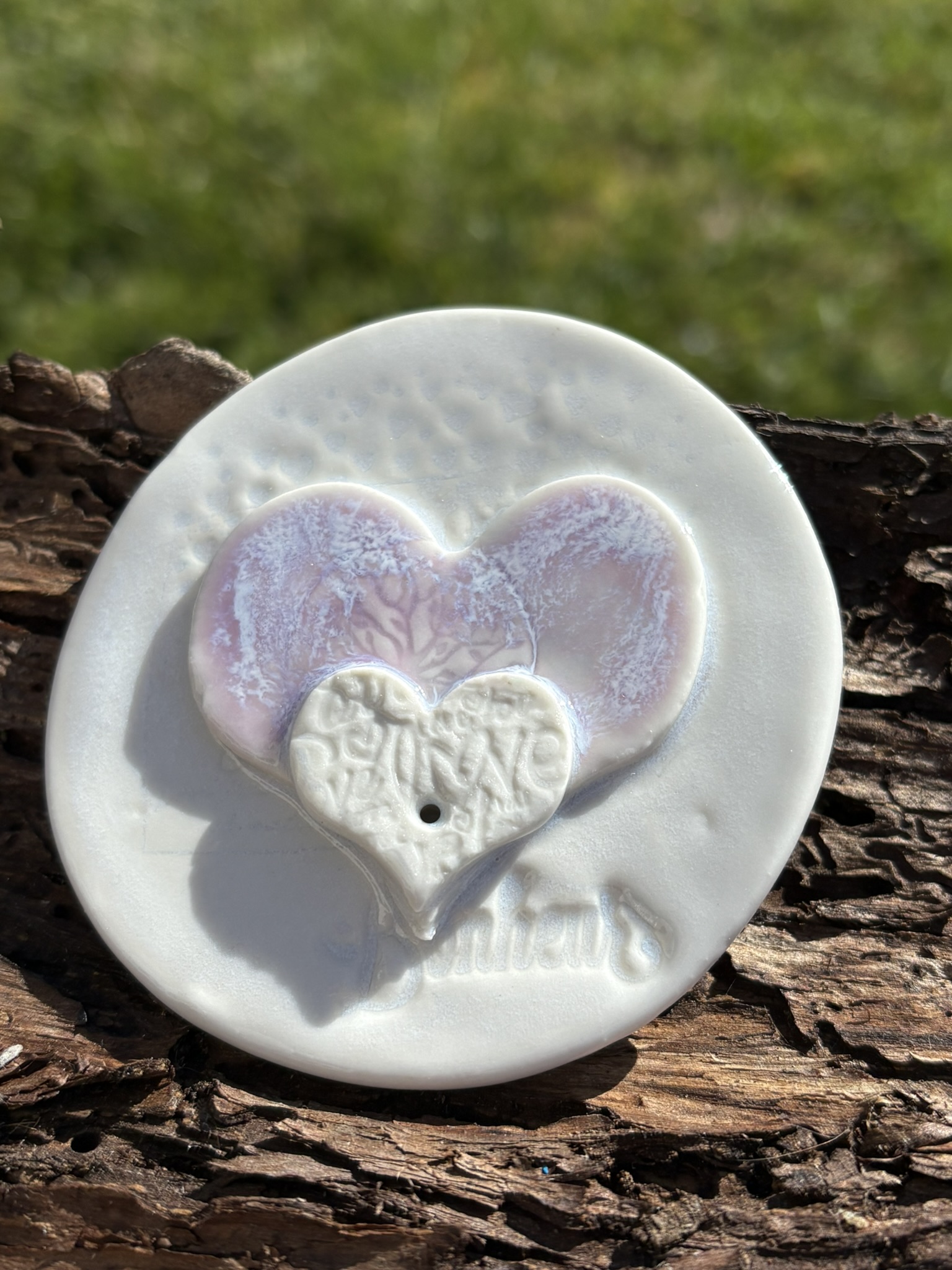 Porte encens en porcelaine blanche avec message